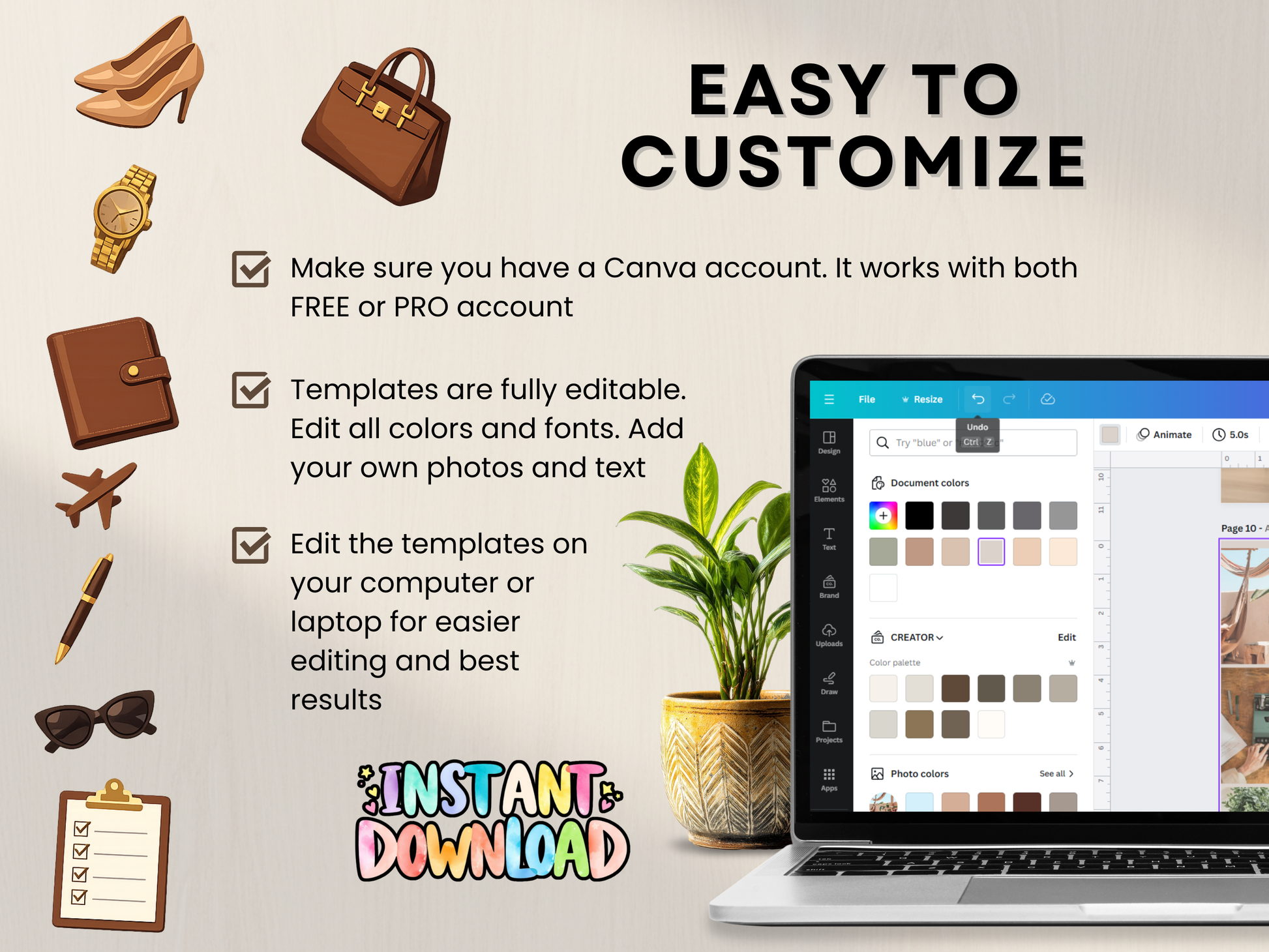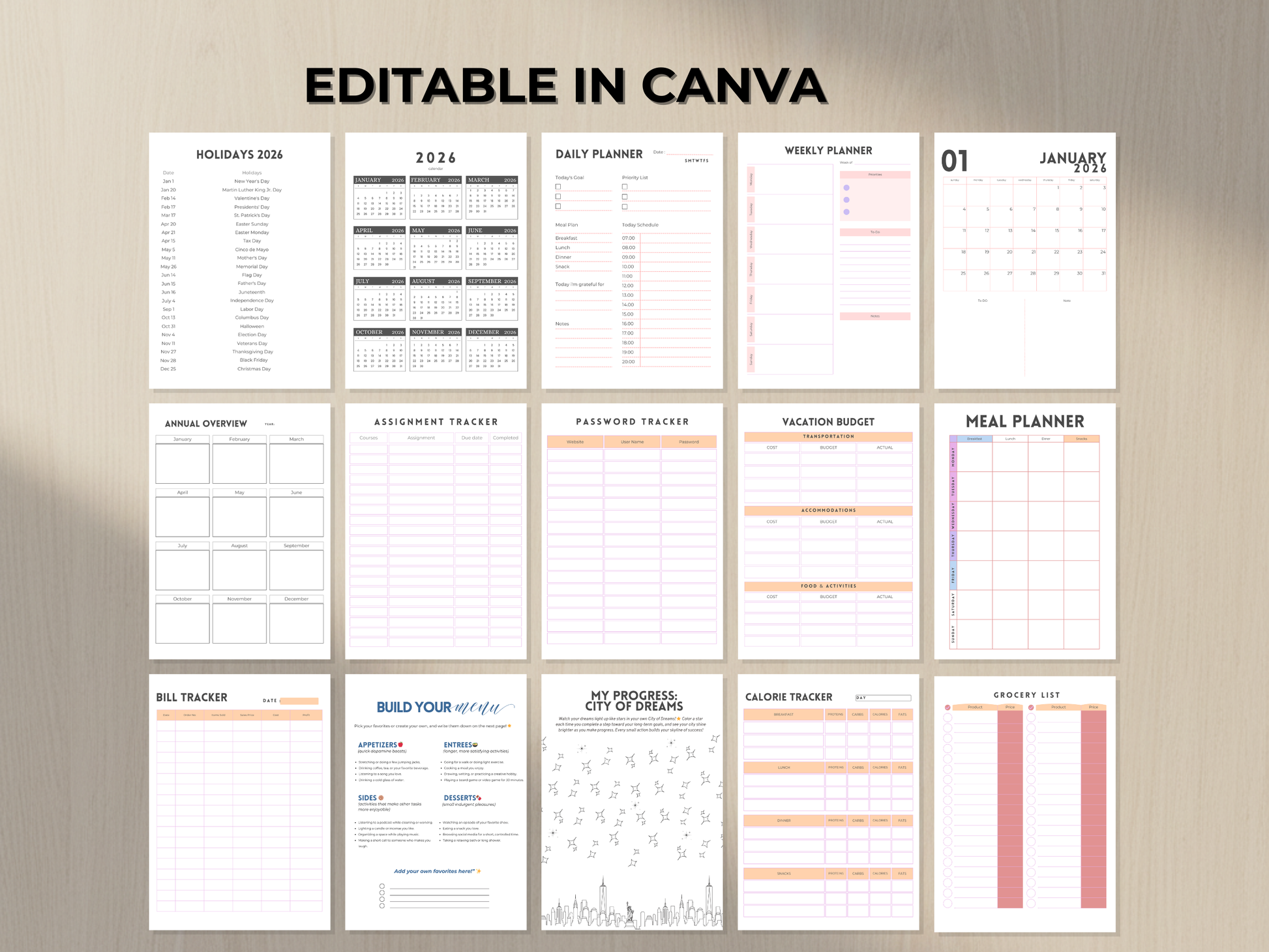 Fully editable in Canva, this planner is easy to customize and rebrand. You can change colors, fonts, wording, and layouts to fit your personal style or business.